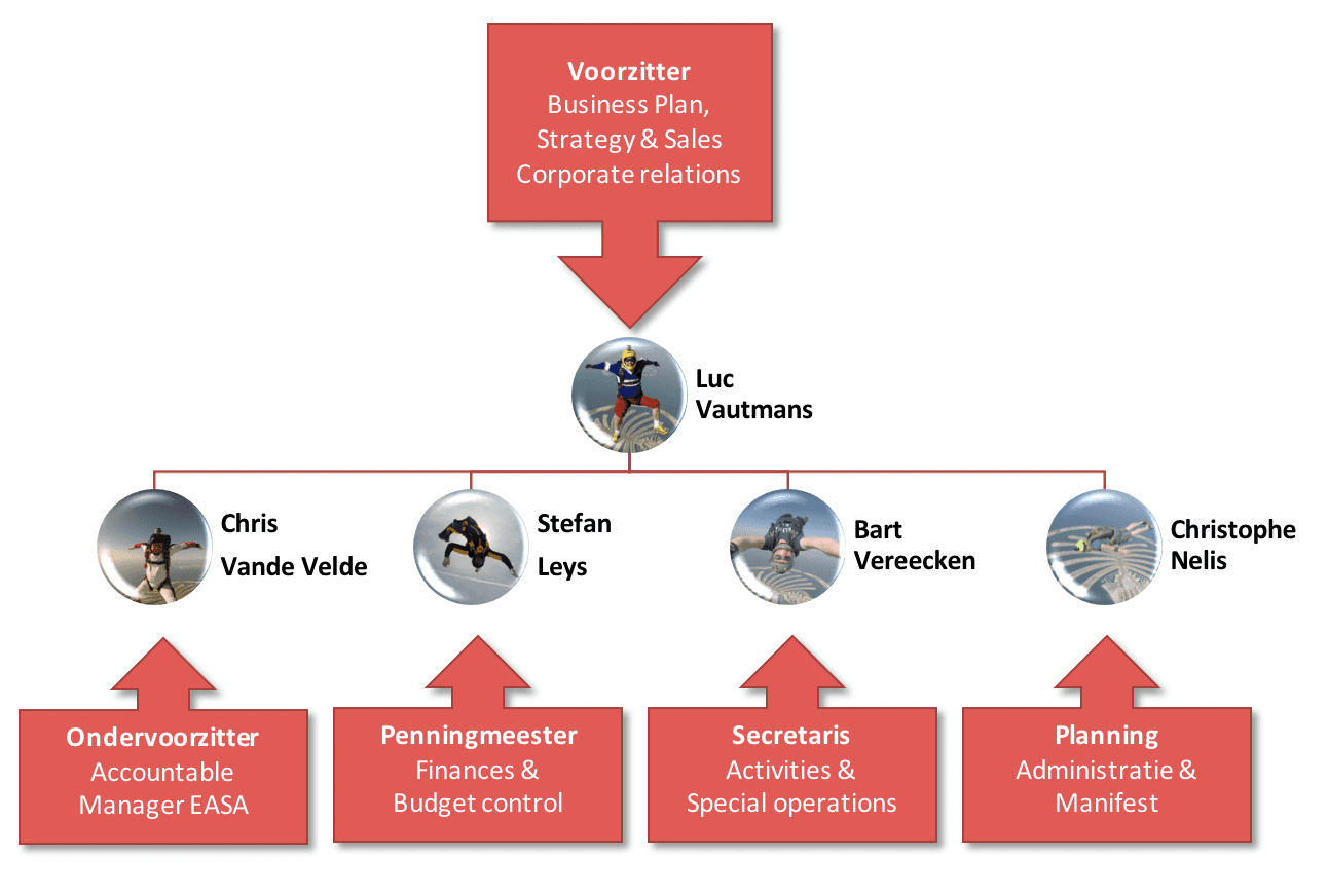 Ons ervaren en uiterst professioneel team van instructeurs, in combinatie met ons perfect onderhouden vliegtuig en parachutemateriaal dat voldoet aan alle recentste veiligheidseisen, staat garant voor een optimaal veilige ervaring. We bieden doorlopend tandemsprongen (duosprongen) waarbij u vooral zorgeloos kan genieten, maar leiden ook elk jaar vele nieuwe mensen op tot veilige en zelfstandige sportparachutisten (skydivers). Maak alvast kennis met ons dynamisch team, een fantastische mix van ervaren rotten en jong geweld: